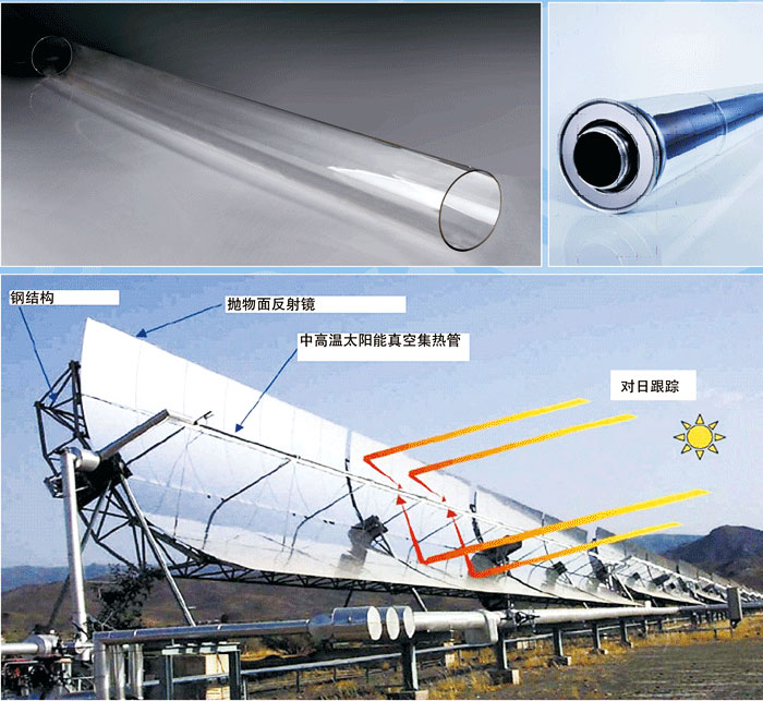 槽式太陽(yáng)能熱發(fā)電系統(tǒng)的核心部分就是聚光集熱系統(tǒng),而聚光集熱系統(tǒng)的核心部件就是中高溫太陽(yáng)能真空集熱管。