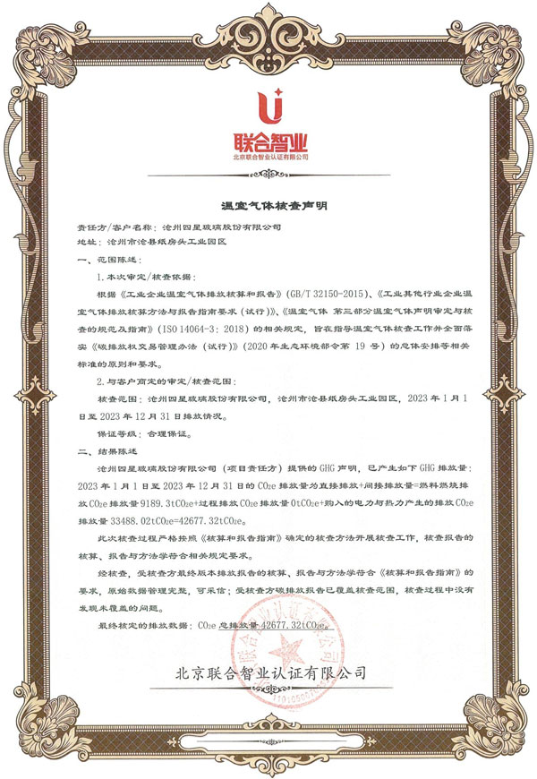 附件:滄州四星玻璃股份有限公司產品碳足跡報告  [點擊查看詳情]